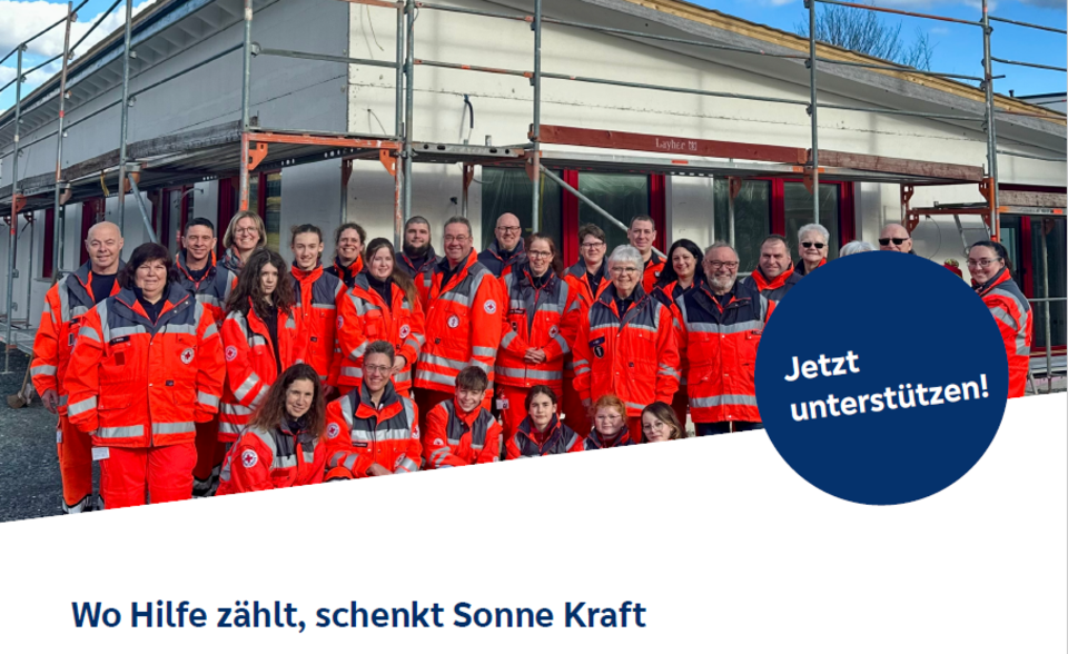 Für unser neues DRK-Heim in Kreuztal-Eichen planen wir eine Photovoltaikanlage. Mit Ihrer Spende investieren wir in saubere Energie, senken dauerhaft Betriebskosten und stärken nachhaltiges Engagement für unsere Gemeinschaft